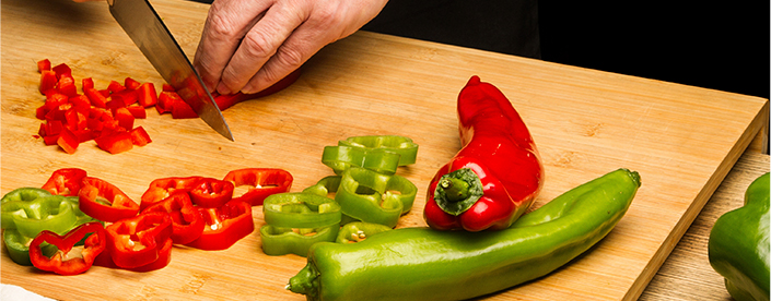 نواصل تحضير الأرز. نبدأ بتقطيع الفلفل الأخضر والأحمر. ثم نضع الباييلا مع زيت الزيتون على النار. عندما يأخذون لونًا قليلاً، نضيف الثوم المقشر والمقطع إلى نصفين. ثم، عندما يصبح الثوم ذهبيًا قليلاً، أضيفي الفلفل المقطع مسبقًا. بني كل شيء على نار متوسطة إلى منخفضة.